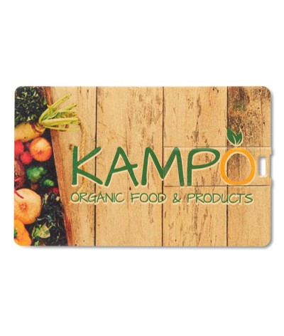 Clé USB format carte de crédit biosourcée à base en paille et PP. Grande surface pour un marquage en quadrichromie.