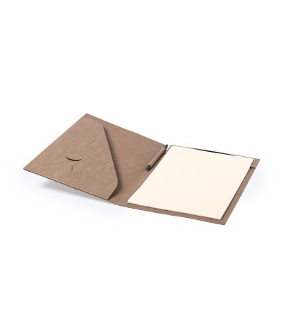 Conférencier en carton recyclé résistant rigide avec stylo à bille en carton recyclé assorti inclus. Intérieur avec bloc-notes amovible de 20 feuilles unies, pochette à rabat, porte-cartes et... Suite dans la description