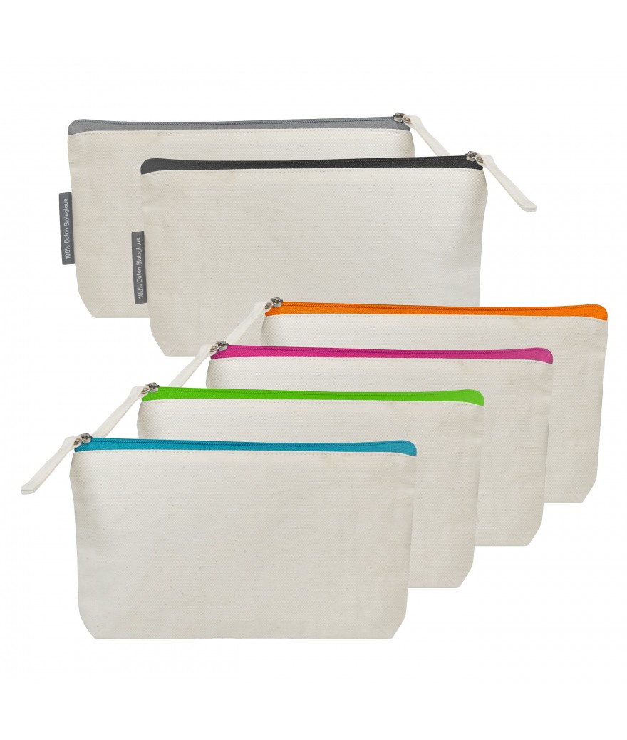 Trousse de voyage ou cosmétique avec fermeture zippée. Articles cosmétiques non inclus. 100% coton biologique - 280gr/m² Matière première issue de filière certifiée GOTS.