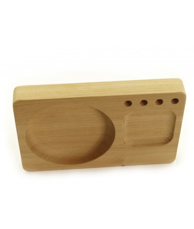 Vide poche pour bureau en bois de châtaignier (origine Cévennes). Made in France. Une défonce de 2 cm pour positionner un pot à fleur Quatre défonces de 2 cm, diamètre 1 cm pour stylo Une... Suite dans la description