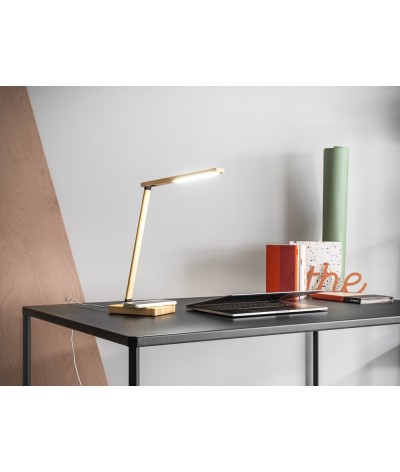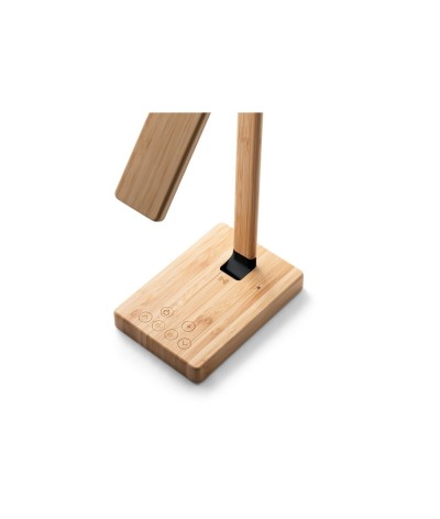 Lampe de table pliante en bambou avec chargeur sans fil, 16 LED blanches et 9 jaunes. Le chargeur sans fil est à charge rapide, a une puissance jusqu'à 10W, avec des entrées 5V/2A, 9V/2A. C... Suite dans la description
