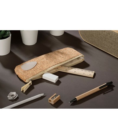 L'étui à crayons est en liège, ce qui correspond parfaitement aux tendances écologiques.