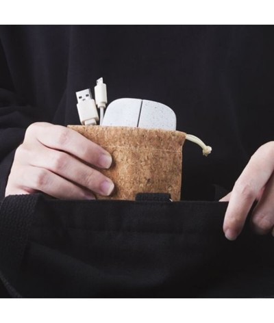 La souris a une autonomie de 25 jours. Utilisation possible pendant son chargement en filaire. Connection 2.4G: sans fil, rapide et efficace. Coque Bio-dégradable Pochette en liège. Souris sans fil. Batterie rechargeable intégrée. Logo lumineux Design élégant
