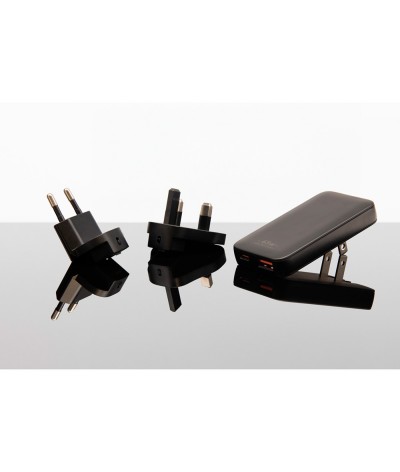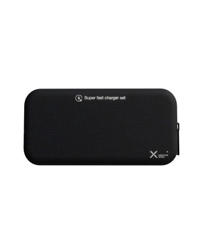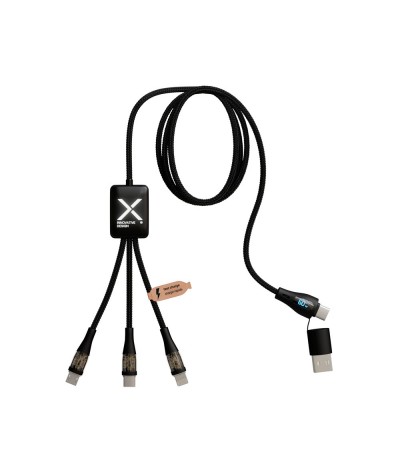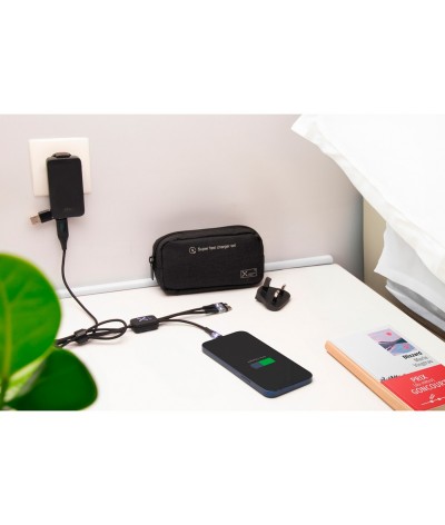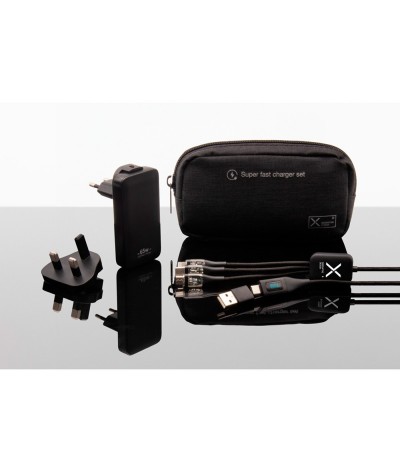 Set de chargement comprenant un adaptateur de charge rapide de 65 W et un câble de charge 5-en-1 à charge rapide de 60 W avec affichage digital de la vitesse. Le set permet de recharger ordinateurs portables, tablettes et smartphones. Il est équipé de la technologie PD et GaN et d'une double sortie Type-C et USB-A pour une charge rapide et adaptée. L'adaptateur 65W est fourni avec 2 prises amovibles, ce qui rend l'ensemble facile à transporter et idéal pour les voyages (US/EU/UK). Le câble possède des cordons en rPET (plastique fabriqué à partir de bouteilles recyclées) et est personnalisable avec un logo lumineux sur deux faces. Sa double entrée USB-A + USB-C le rend 100% compatible avec les derniers modèles d'ordinateurs. Le set est présenté dans un étui avec fermeture zippée facilitant son transport. Tout est inclus : Pochette en matériau recyclé et personnalisation sur le câble.