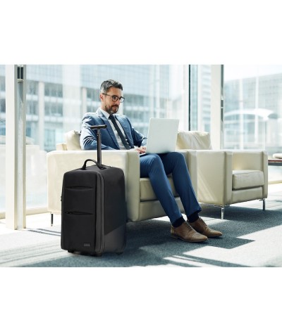 Business trolley convertible en sac à dos en rPET muni d'un powerbank de 10 000 mAh