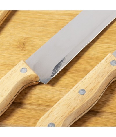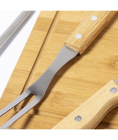 Set Barbecue 6 accessoires, planche bois et acier inoxydable avec housse de rangement.