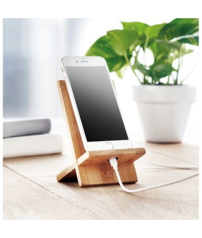 Support téléphone bambou en 2 parties. Le bambou est un produit naturel, il peut y avoir des variations de couleur de taille par article.