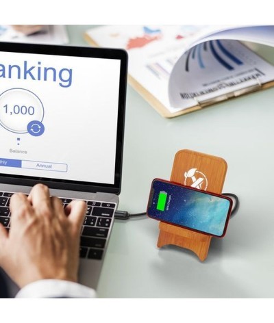 Support à chargement induction 10W en bois FSC avec logo lumineux