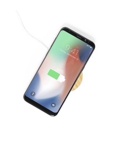 Chargeur sans fil magnétique avec fonction de support mobile. Chargeur sans fil en bambou, et boîtier en PLA, qui est obtenu à partir de ressources 100% naturelles telles que l’amidon de maïs, le manioc ou la canne à sucre, pouvant devenir 100% compostable à la fin de son cycle de vie utile.