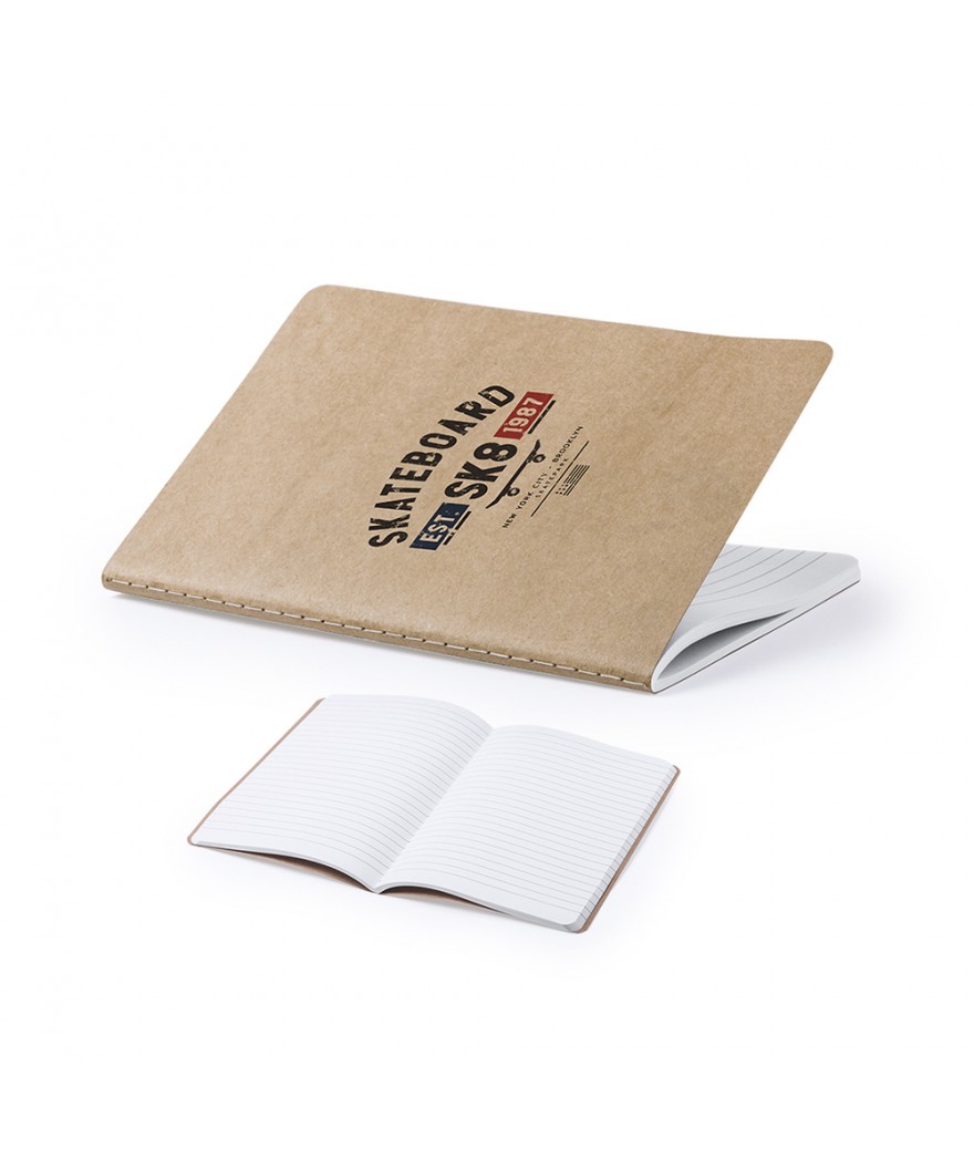 Cahier avec couverture en carton recyclé comprenant 60 feuilles lignées.