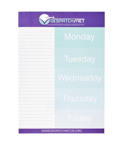 Bloc-notes A4 blanc. Inclut des feuilles de papier vierge de 80 g/m². Version standard avec 50 feuilles, également disponible avec 25 ou 100 feuilles. Marquage possible sur chaque feuille. Dimensions des feuilles : 210x297mm.