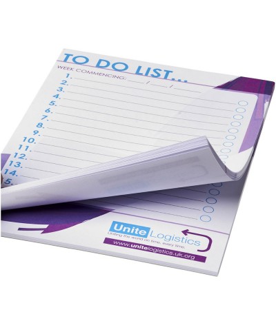 Bloc-notes A5 blanc. Inclut des feuilles de papier vierge de 80 g/m². Version standard avec 50 feuilles, également disponible avec 25 ou 100 feuilles. Marquage possible sur chaque feuille.