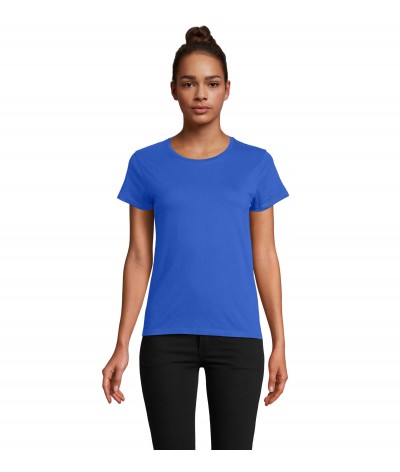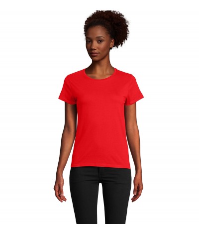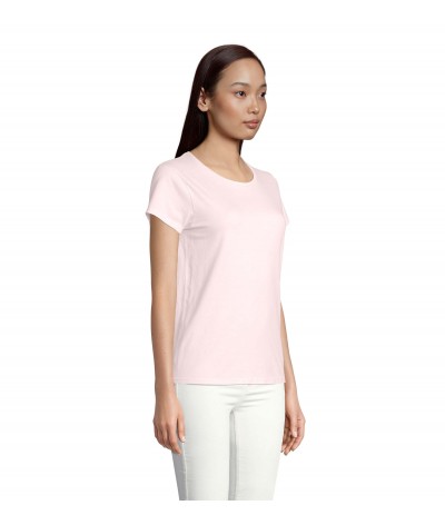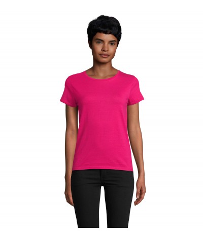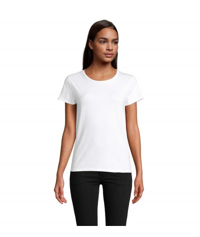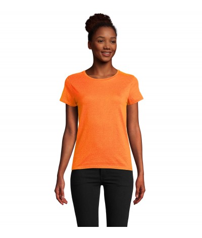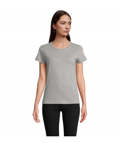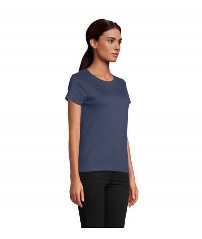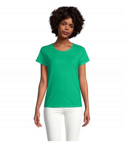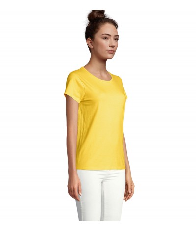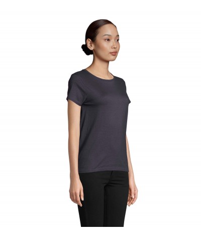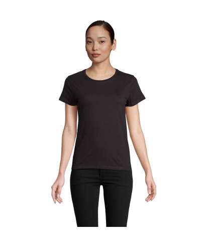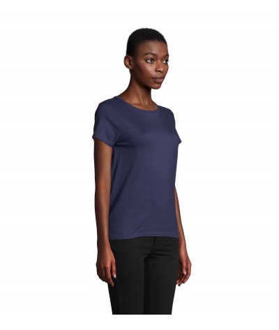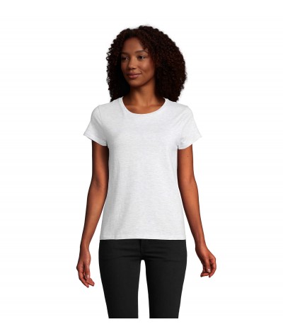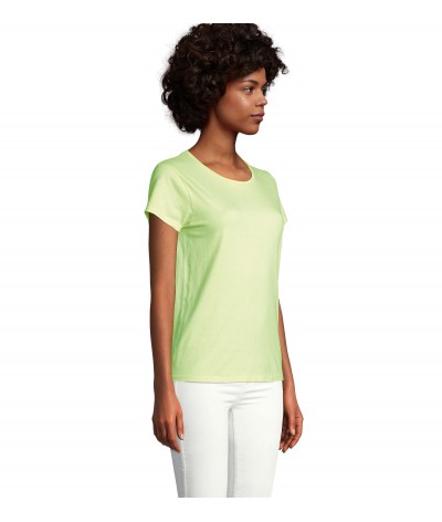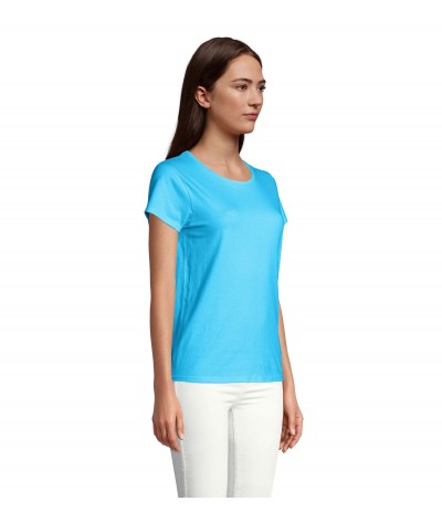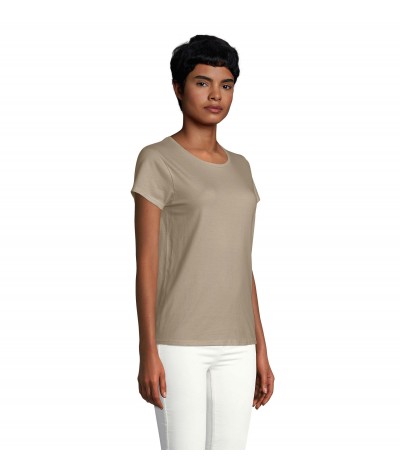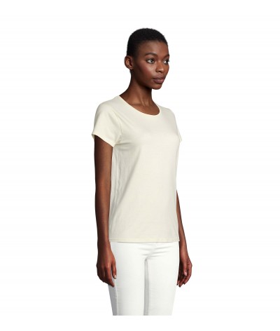 T-shirt femme jersey col rond Jersey 150 gr. Coton issu à 100% de l'agriculture biologique, apprêt naturel pour une qualité plus douce et lisse. Col avec bord côte 100% coton98 % coton bio /... Suite dans la description