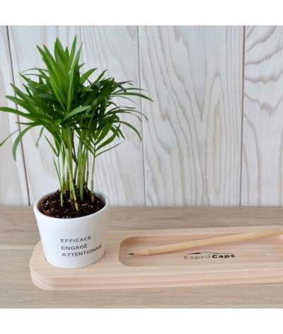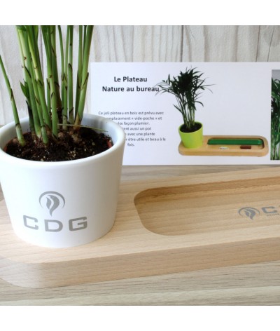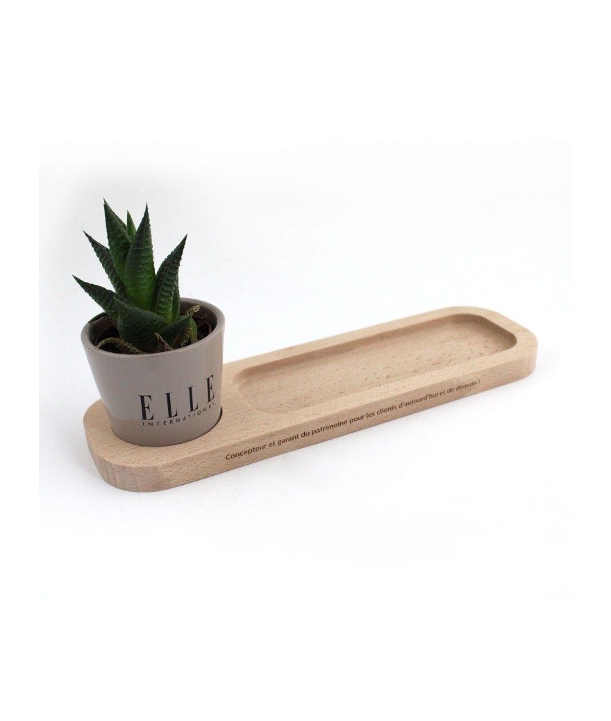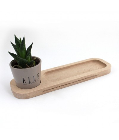 Le Plateau Nature en hêtre avec un emplacement pour le pot et un « vide poche » et stylos façon plumier Il contient un pot en céramique de 6 cm de diamètre ( couleur au choix : rose, blanc,... Suite dans la description