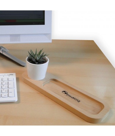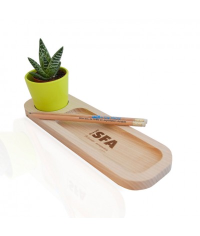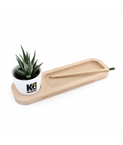 Le Plateau Nature en hêtre avec un emplacement pour le pot et un « vide poche » et stylos façon plumier