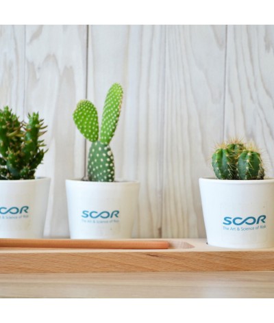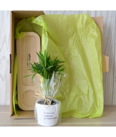 Il contient un pot en céramique de 6 cm de diamètre ( couleur au choix : rose, blanc, vert ou bordeaux) avec une plante dépolluante, une plante grasse ou un cactus.