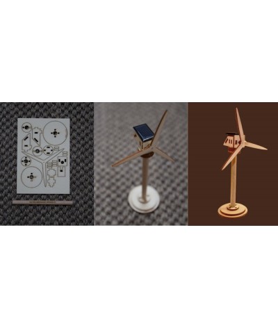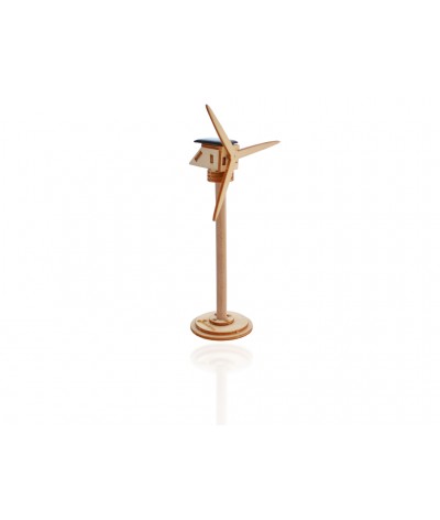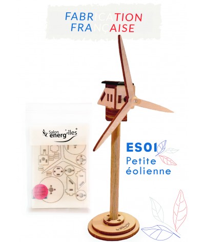 Eolienne solaire en bois équipée d’un capteur solaire + moteur électrique pour faire tourner les hélices. Fabrication française. Proposée en kit de montage rapide et facile avec notice et... Suite dans la description