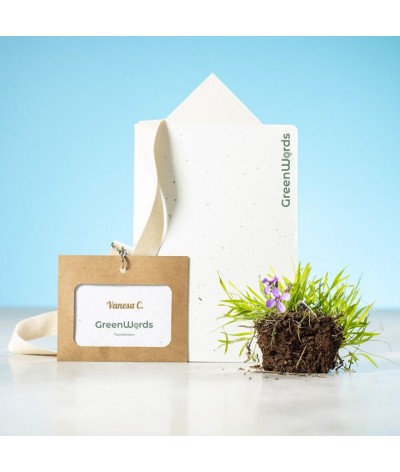 Badge porte-carte de visite avec papier ensemencé fleurs Sauvages Carton Recyclé Fabriqué en Europe