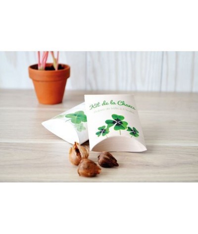 2 bulbes de trèfle à 4 feuilles sous berlingot personnalisé