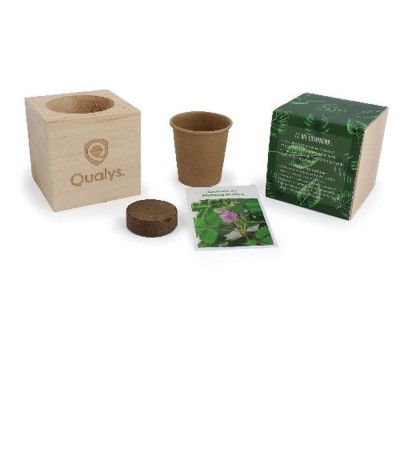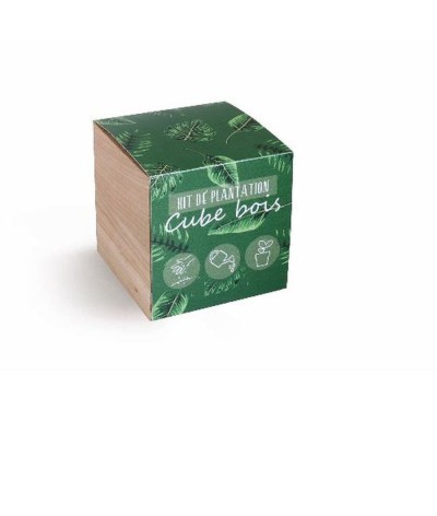 Cube bois en bois d'aulne contenant : • un sachet de graines (variété au choix) • une plaquette de tourbe 38 mm • un fourreau standard imprimé quadri recto En option : personnalisation... Suite dans la description