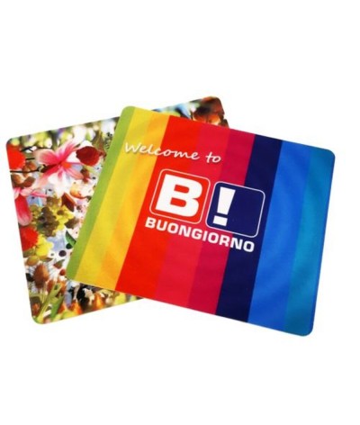 Tapis de souris en polyester recyclé, avec traitement antidérapant, imprimé en sublimation transfert sur toute la surface. Chaque tapis de souris subit un traitement déperlant et un traitement antiviral et antibactérien, capable d'éliminer l'agent pathogène après seulement 2 minutes.