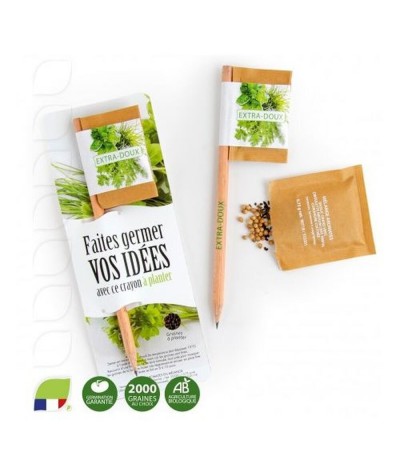 Que ce soit le crayon ou bien le sachet de graines et même l'étui qui l'accompagne, ce crayon publicitaire en bois naturel vous offre un large support de communication ! Il ne vous reste plus qu'à semer pour récolter de jolies plantations !