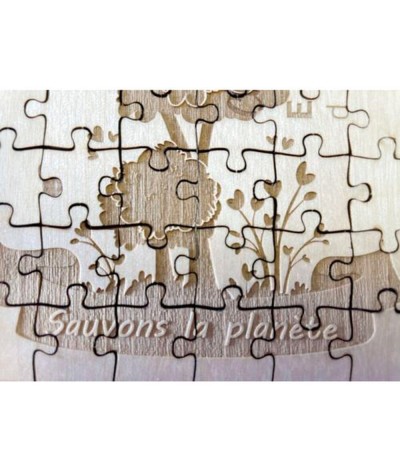 Puzzle en MDF Plaqué bois érable 3mm composé de 38 pièces. Marquage UV ou marquage laser En option : - Pochon coton 10x14 cm non marqué + mise en pochon - ou Pochon coton 10x14 cm marquage... Suite dans la description