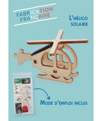 Hélico solaire en bois équipée d’un capteur solaire + moteur électrique pour le faire tourner. Fabrication française Proposé en kit de montage rapide et facile avec notice et sans outils