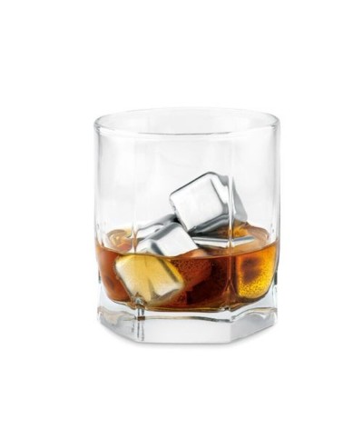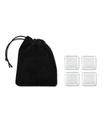 Ensemble de 4 glaçons en acier inoxydable réutilisables dans une pochette en velours.