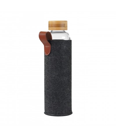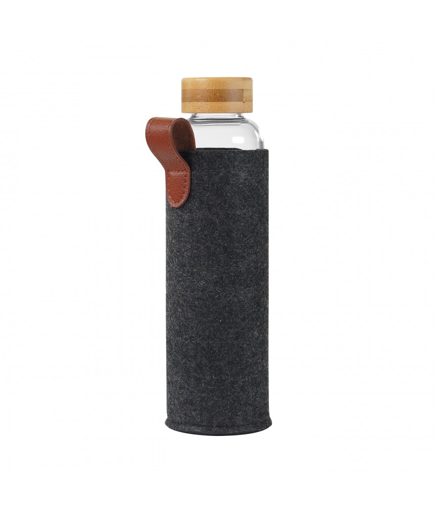 - Bouteille - 550ml - Bouchon en bambou - 100% verre borosilicate - Fourreau en feutre recyclé - Coloris: grisConditionnement : Sous boîte carton.