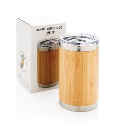 Mug 270ml à double parois, intérieur en acier inoxydable 304 et extérieur en bambou. Taille compacte idéale pour être placé sous la machine à café. Garde les boissons chaudes jusqu'à 3 h... Suite dans la description