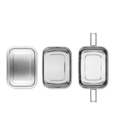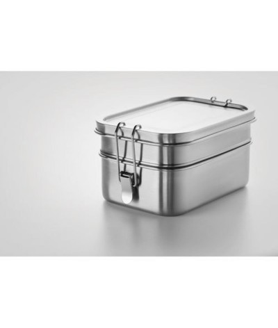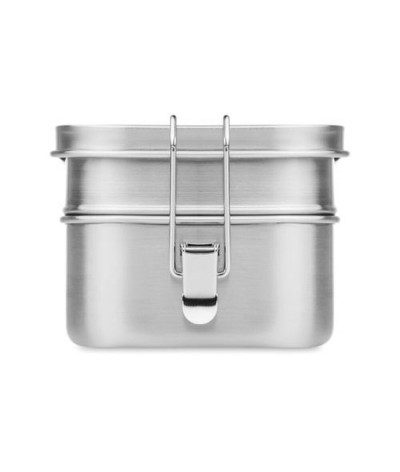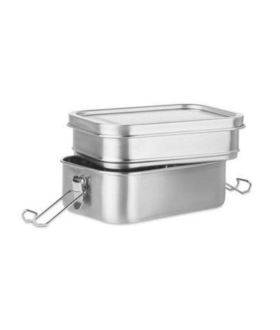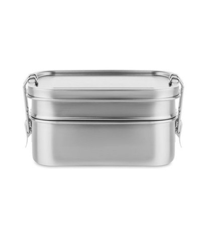 Lunchbox en acier inoxydable à deux compartiments. La boîte à lunch est munie de solides boucles latérales qui la protègent des fuites. Avec une capacité totale de 1200 ml, vous pouvez emporter un déjeuner sain avec vous au travail. L'acier inoxydable de qualité alimentaire vous permettra de conserver la fraîcheur de vos aliments.