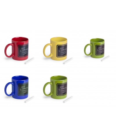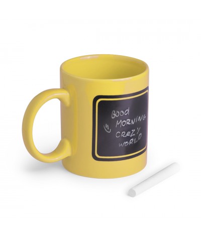 Mug en céramique de 370 ml avec surface en ardoise noire pour écrire. Craie incluse. Présenté en boîte individuelle.