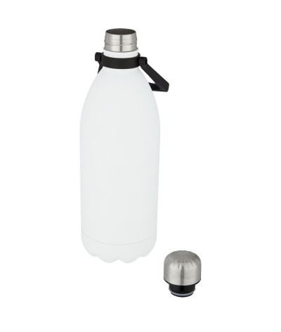 Bouteille extra large à isolation sous vide en acier inoxydable avec un design iconique doté d'une poignée confortable pour un transport facile. L'acier inoxydable 18/8 avec isolation par le vide conserve les boissons chaudes ou froides pendant plusieurs heures. Sans bisphénol A, testée et approuvée par la législation allemande sur la sécurité alimentaire (LFGB). Testée et approuvée pour la teneur en phtalates conformément à la réglementation REACH. Capacité de 1,5 L. Lavage à la main recommandé. Livrée dans un coffret cadeau en carton recyclé.