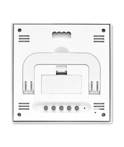 Comprend une horloge, un affichage de la température, de l'humidité et un calendrier.