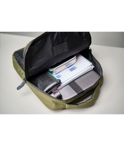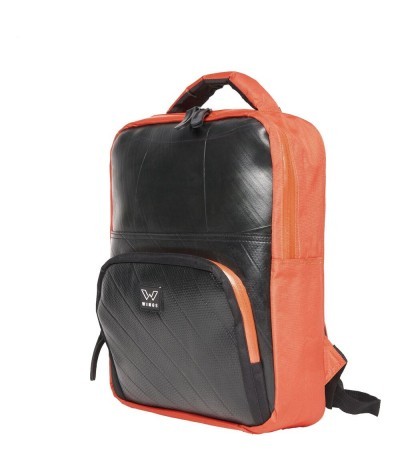 Ce sac à dos est fabriqué à la main à partir de chambres à air de voiture résistants et de bouteilles en PET recyclées. Livré avec un compartiment principal spacieux et un rangement séparé pour ordinateur portable jusqu'à 17 pouces. Entièrement doublé.