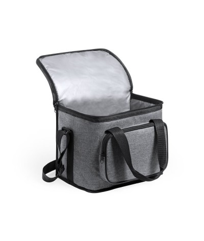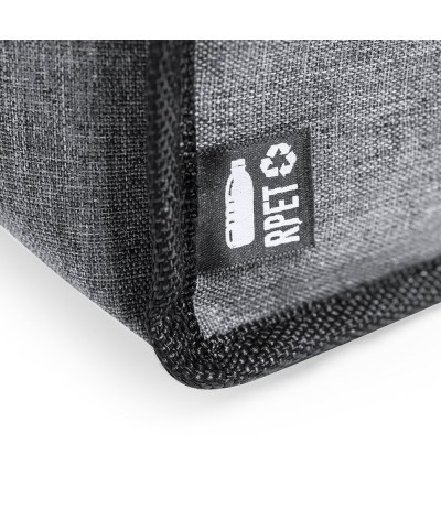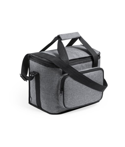 Glacière 600D rPET, fabriqué à partir de plastique recyclé pour promouvoir la réutilisation des déchets plastiques et contribuer à la durabilité de la planète. Détails noirs et base... Suite dans la description