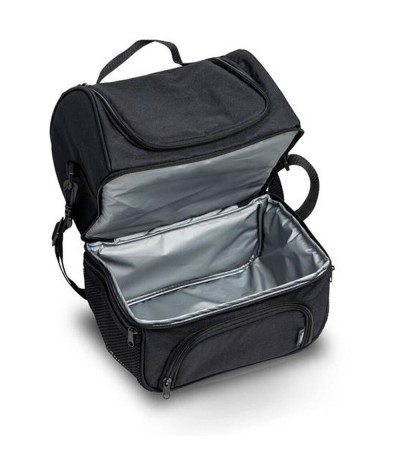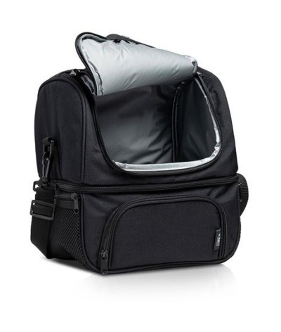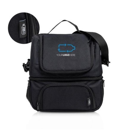 Ce sac isotherme, fabriqué à partir de bouteilles usagées, possède deux compartiments distincts pour transporter séparément les aliments chauds et froids. Comprend une bandoulière réglable... Suite dans la description