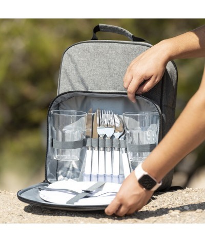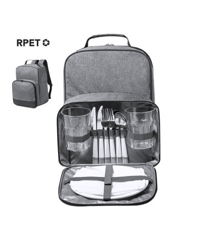 Sac à dos glacière de pique-nique Nature line, fabriqué en RPET 600D durable et de haute qualité, produit à partir de plastique recyclé pour encourager la réutilisation des déchets plastiques et contribuer à la durabilité de la planète. Idéal pour 2 personnes, avec une poche séparée pour un rangement sûr. Comprend 2 verres, 2 couteaux, 2 cuillères, 2 fourchettes, 2 assiettes et 2 serviettes. Compartiment réfrigérant avec intérieur en PEVA et poignée de transport confortable. Sangles et dos rembourrés. Distinction RPET sur l´étiquette.