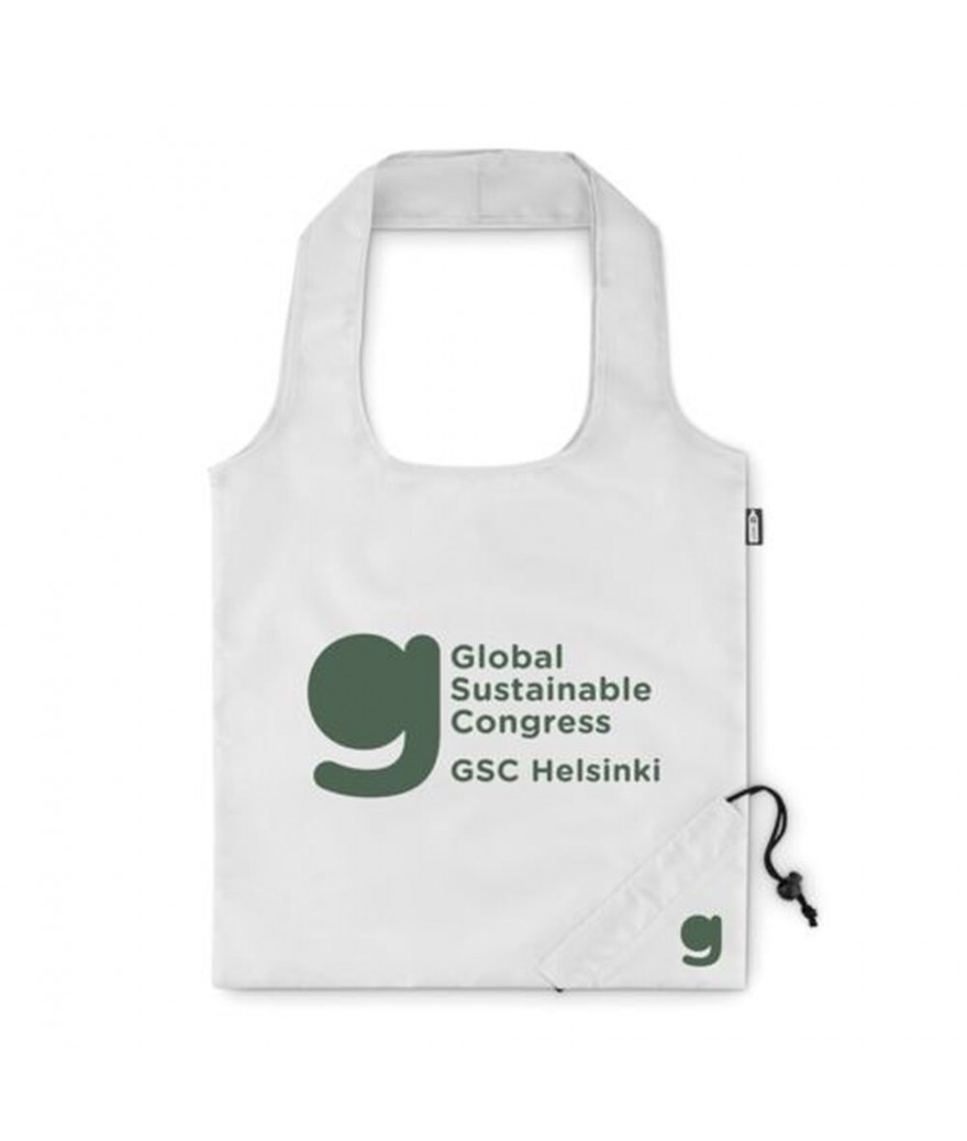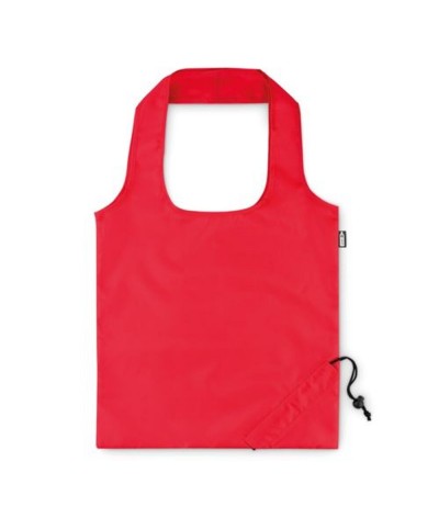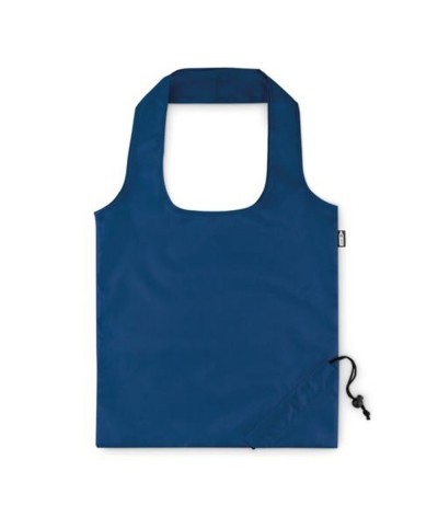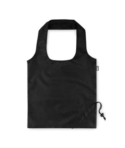 Sac shopping pliable en RPET 190T avec cordon de serrage sur la poche.