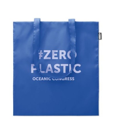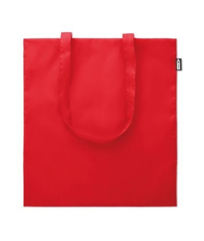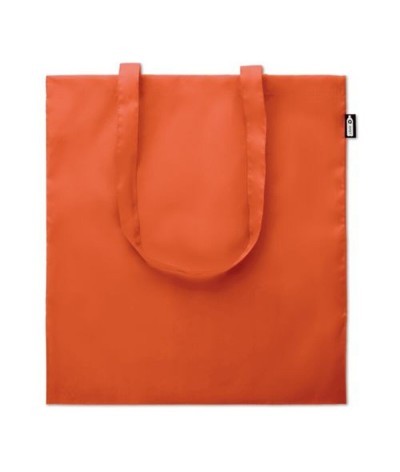 Sac shopping avec longues hanses en rPET 190T 100 gr/m². Matériau écologique fabriqué à partir de bouteilles de plastique recyclées.