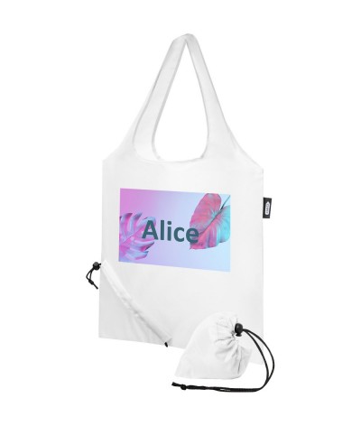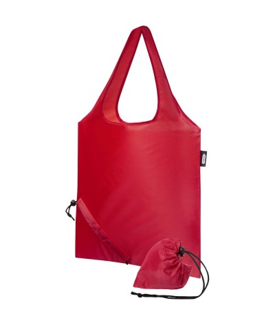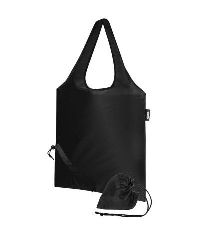 Sac shopping avec compartiment principal ouvert. La hauteur des poignées est de 26 cm. Fonction unique de repli avec fermeture par cordon de serrage.