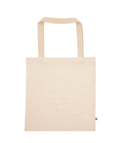 Tote bag coton bio - Made in France. Toile 110g 100% Coton Biologique Confection 100% Française Finitions Détail tricolore coté bas