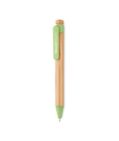 Affichage rapide Liste de souhaits Stylo bille BIO paille blé et bambou Référence 71028 Prix A partir de 0,47 € Stylo bille avec poussoir et corps en bambou, attributs biosourcés à base de paille de blé. Encre bleue.