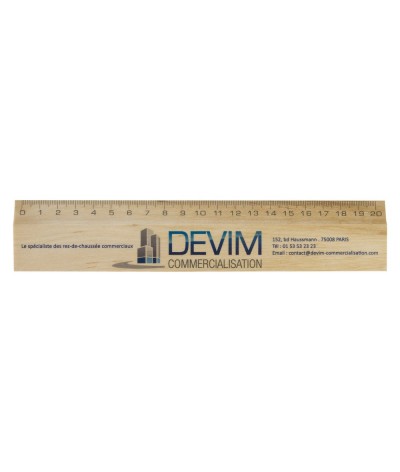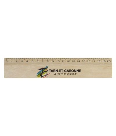 Règle 20 cm en bois de hêtre, marquage quadri 1 face sur la règle face (20x2,4 cm)