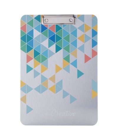 Écritoire format A4 sur mesure en composite aluminium brossé avec personnalisation sur la face avant.