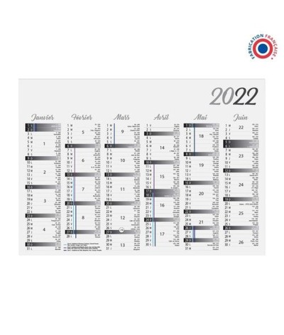 Calendrier bancaire 6 mois/face