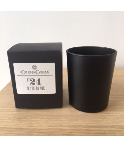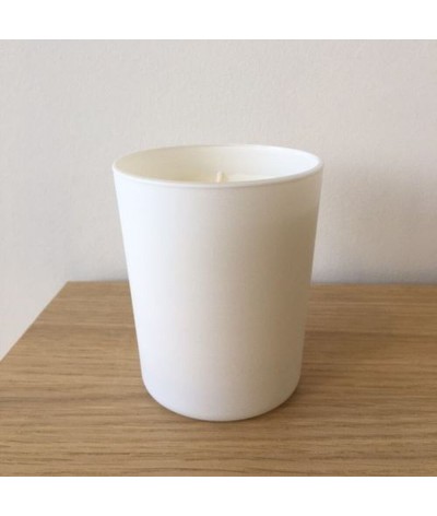 Bougie parfumée de fabrication française. durée de combustion 50h. Mèche coton, verre transparent, laqué blanc ou noir, laqué au pantone Parfums standards : Feuille de figuier, Thé vert, Rose... Suite dans la description