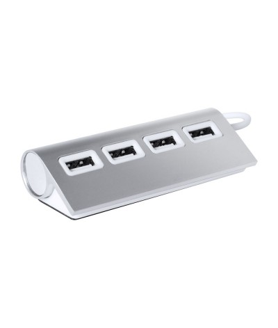 Hub USB en aluminium avec 4 ports et connexion USB 2.0.