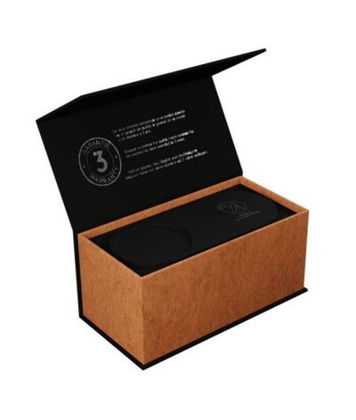 Tout est inclus : personnalisation, câble de chargement en rPET et coffret cadeau en papier recyclé avec fermeture aimantée.